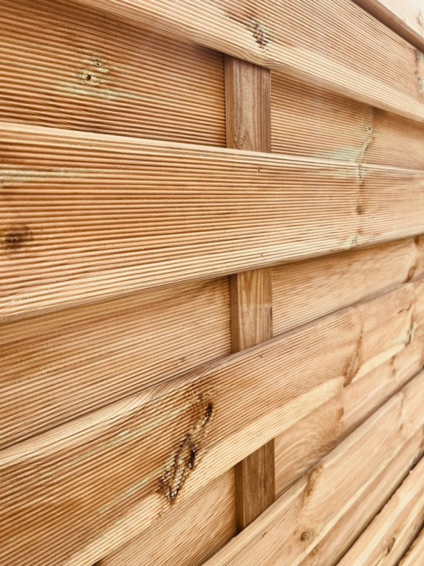 Idealne rozwiązanie w przypadku posiadania tradycyjnych paneli z siatki, które chcą Państwo wymienić na drewniany panel ogrodzeniowy.
